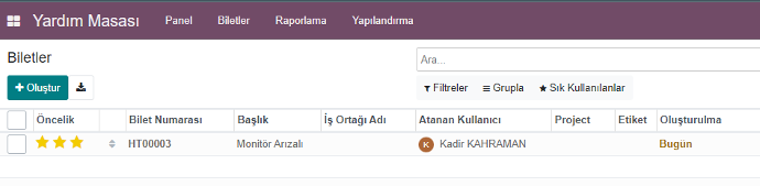 Yazılım, donanım ve ilişkili tüm konularda Odoo ana sayfasında "Yardım Masası" bağlantısını tıklayarak talep sürecini başlayabilirsiniz...
